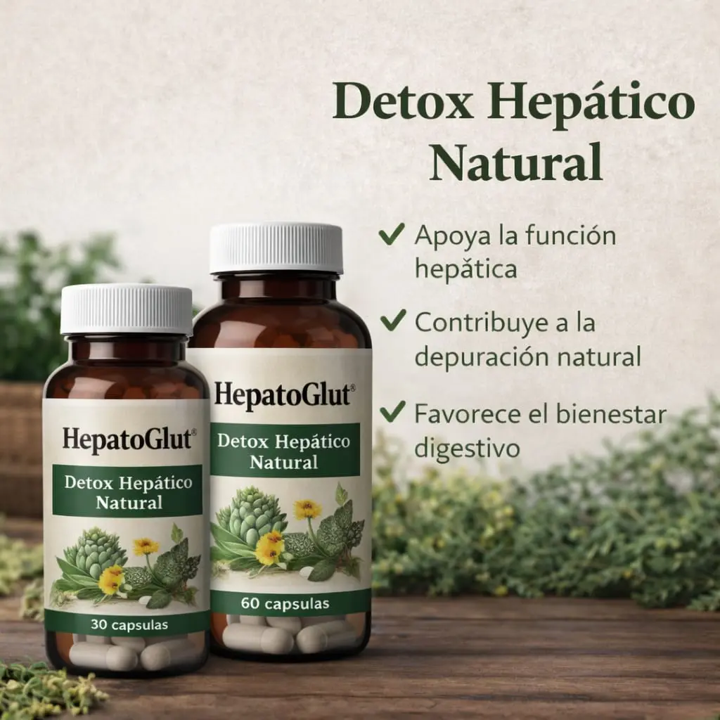HepatoGlut está formulado con una combinación de plantas tradicionalmente utilizadas para apoyar la función hepática y favorecer procesos naturales de depuración.